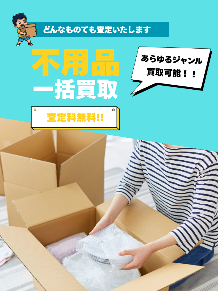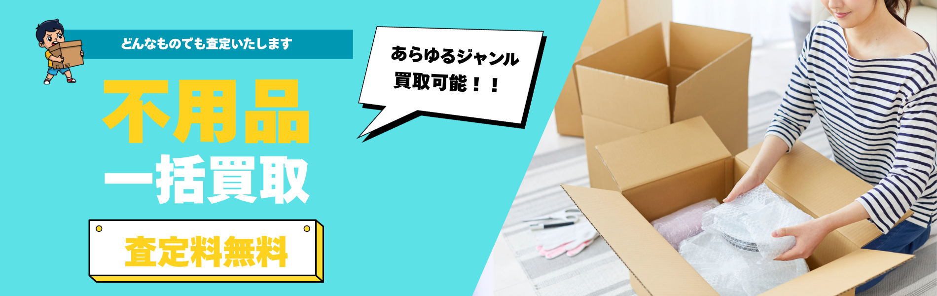 当社ではさまざまなジャンルのお品物を取り扱っているため、まとめての買取が可能です。ご自宅にある不用品を一括で査定し、再販できるお品であれば種類を問わず出張買取いたします。